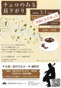 【定員になりました】チェロのある昼下がり 260301