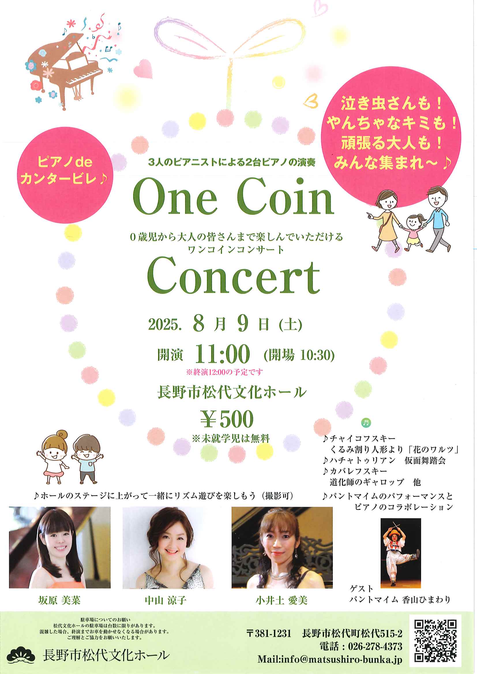 松代文化ホール > イベント > ワンコインコンサート ピアノdeカンタービレ > 【チラシ】ワンコインコンサート 2025.8.09
